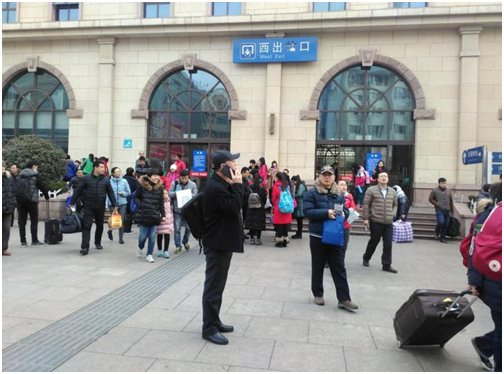 志愿者在青島站到達出口舉牌接站,接到來賓后,步行前往停車場,抵達交通車乘車點(東西出站口均有志愿者引導(dǎo)至循環(huán)交通車)。