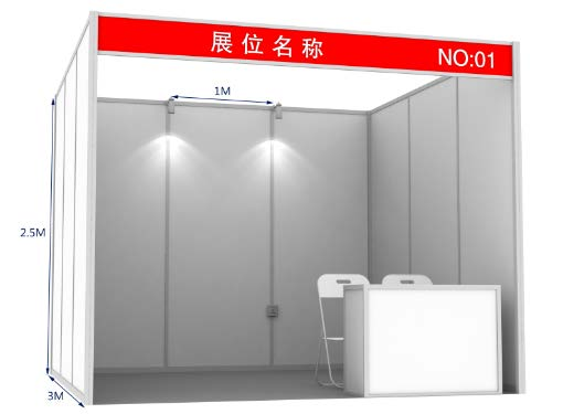 每個標(biāo)準(zhǔn)展臺包含: 咨詢桌1張H750X500X100),折椅2把,電源1處500W,射燈2盞。