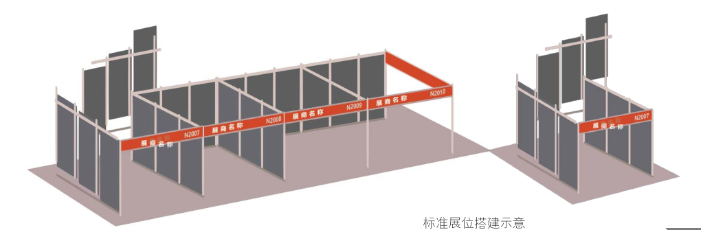 同一家企業(yè)預(yù)定2個及2個以上展位,如不特別聲明,搭建時默認為中間展墻拆除。排頭雙開口展位側(cè)板默認拆除。