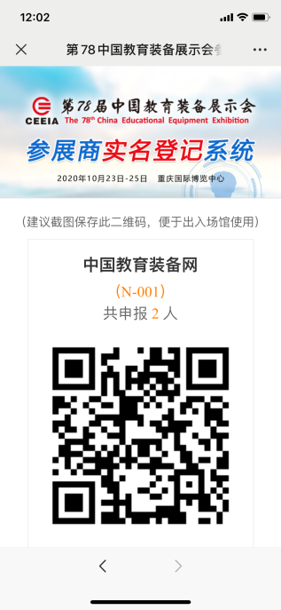 第78屆中國教育裝備展示會(huì)將于2020年10月23-25日在重慶國際博覽中心召開。根據(jù)政府防疫防控要求,本屆展示會(huì)參展商須實(shí)名登記,進(jìn)入展廳需佩戴口罩和參觀證,準(zhǔn)備好疫情防控“通信大數(shù)據(jù)行程卡”綠色行程卡(或“渝康碼”綠碼)及參展商預(yù)登記系統(tǒng)生成的“二維碼”。