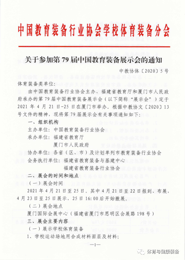 中國教育裝備行業協會學校體育裝備分會關于參加第79屆中國教育裝備展示會的通知