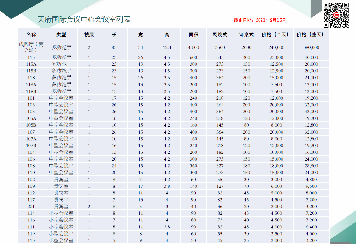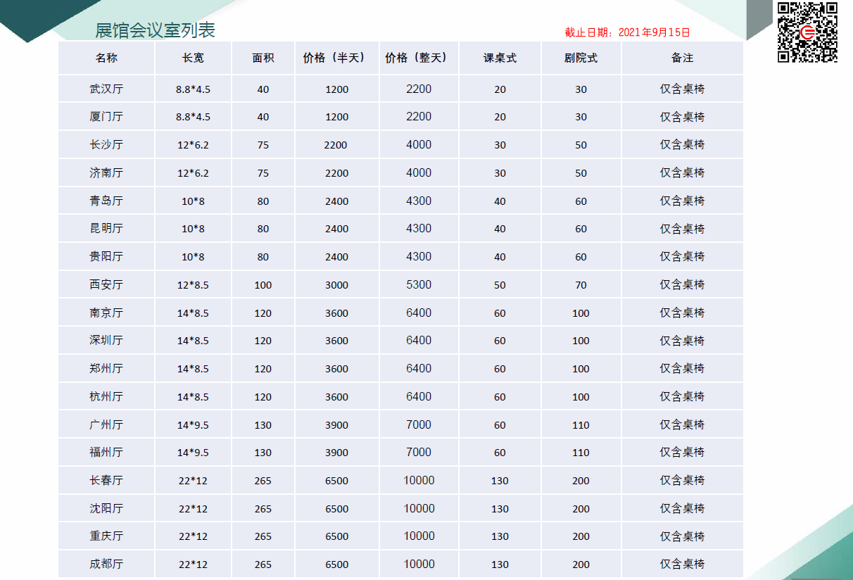 注:此價格僅包括租賃會議室場地費,其他的各類設備費用需現場另行支付