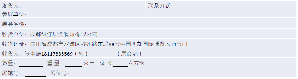 為使您的參展物品能安全、順利、及時的運抵參展地——中國西部國際博覽城,請您認真閱讀本《展品物流指南》,若有不明之處或其他特別要求,敬請按下列方式聯系: