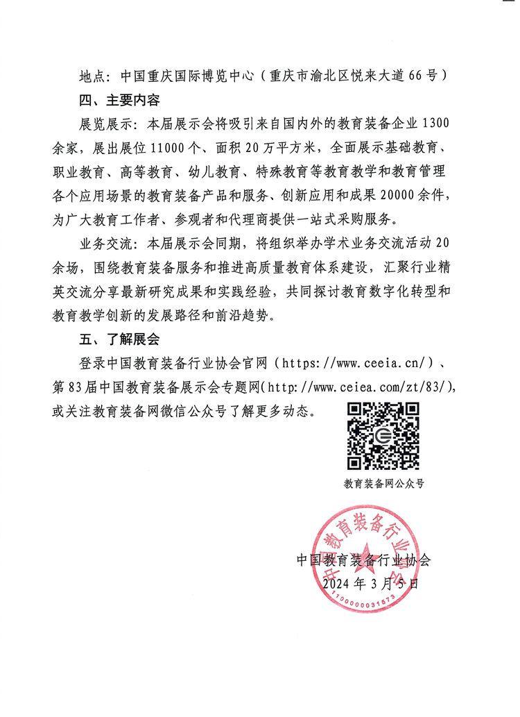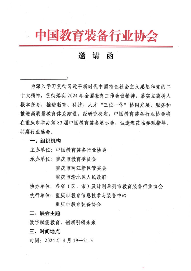 點擊查看下載>>>第83屆中國教育裝備展示會邀請函